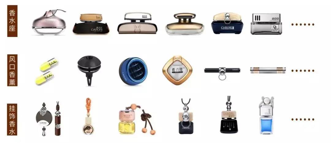 十年時間,香百年在車載香薰的產品線十分豐富多元化,風口香薰、香水座、香水掛飾,香膏各種產品一應俱全。